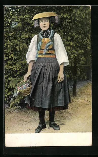 AK Junge Frau mit Blumenkorb in Vierländer Tracht