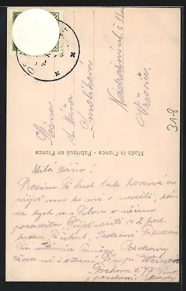 alte Ansichtskarte, gelaufen, rückseitig Klebe- und Papierreste, guter Zustand