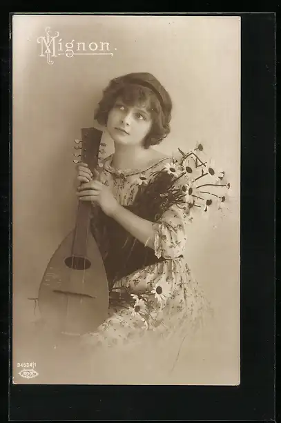 AK Junge Frau mit Lautengitarre und Gänseblumen