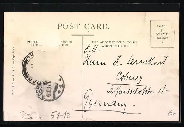 alte Ansichtskarte, gelaufen 1907, Briefmarke entfernt, guter Zustand
