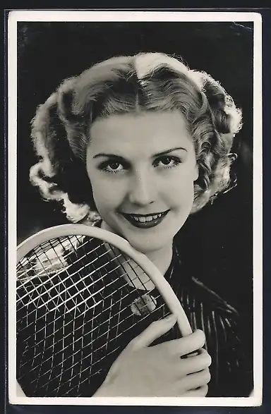 AK Junge Frau mit Tennisschläger und lächelndem Ausdruck