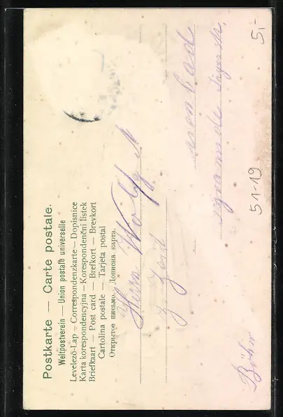 alte Ansichtskarte, gelaufen, Briefmarke entfernt, rückseitig Oberflächenschaden, guter Zustand