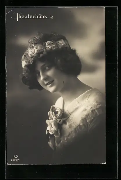 AK Junge Frau mit einem Theaterhut, Mode