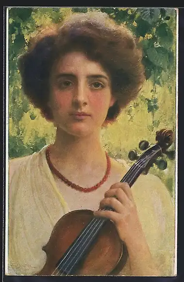 AK Junge Frau mit einer Geige