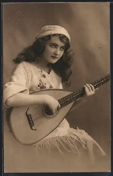 AK Junge Frau mit einer Laute
