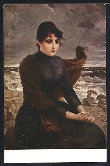 AK Junge Frau trauert um ihren verschollen Mann auf See