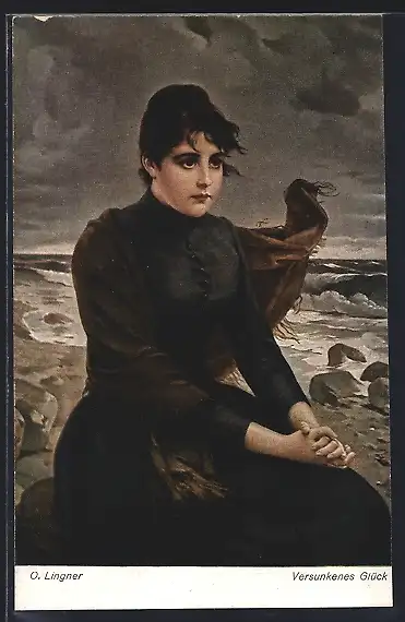 AK Junge Frau trauert um ihren verschollen Mann auf See
