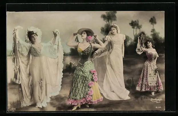 AK Junge Frauen in Kleidern mit einem Tamburin