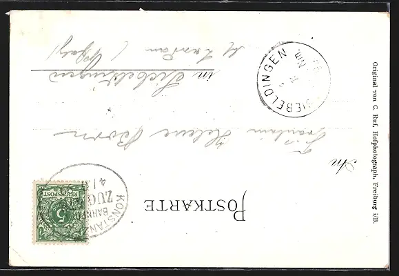 alte Ansichtskarte, gelaufen 1899, Eckknick re. unten, guter Zustand