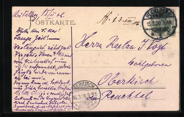 alte Ansichtskarte, gelaufen 1906, Stempelspur, guter Zustand