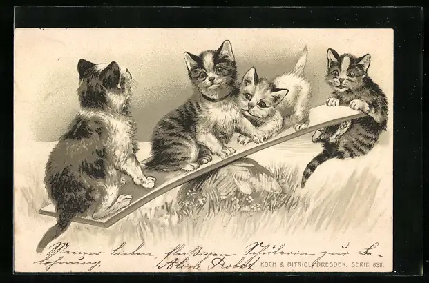AK Junge Katzen auf einer Wippe