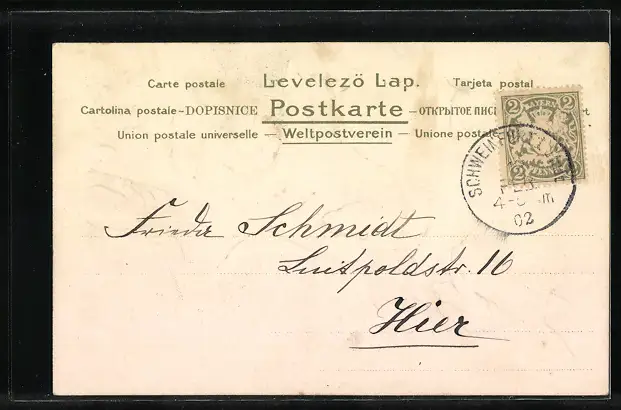 alte Ansichtskarte, gelaufen 1902, guter Zustand