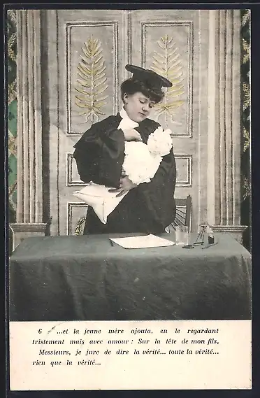 AK Junge Mutter mit Kind im Richter-Kostüm
