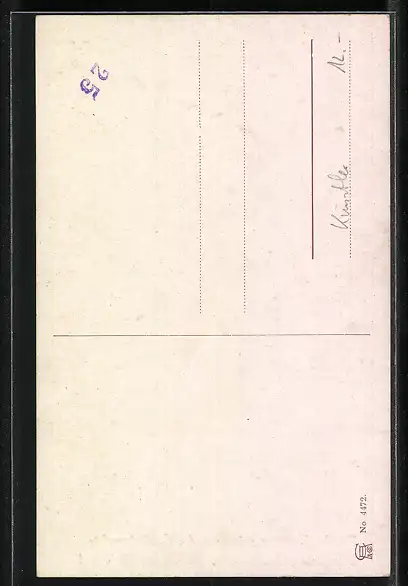 Personenbezogene Daten auf der Rückseite der Karte wurden durch blauen Textmarker unkenntlich gemacht. Die blauen Stellen sind auf die Vorderseite durchgeweicht und wirken sich negativ auf das Postkartenfoto aus
