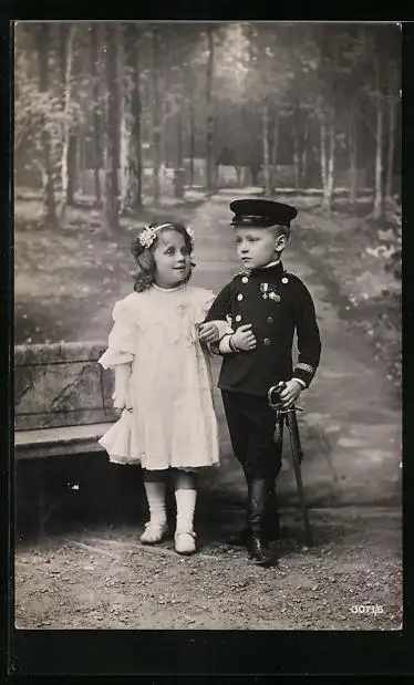 AK Junge in Uniform mit Mädchen im Arm, Kinder Kriegspropaganda