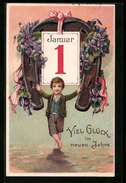 AK Junge mit Hufeisen und Veilchen