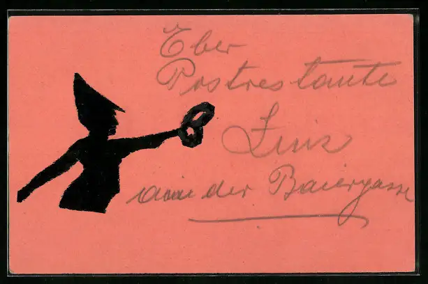 AK Junge mit Mütze und Brezel, Scherenschnitt