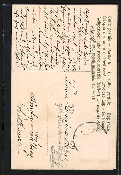 alte Ansichtskarte, gelaufen, Briefmarke entfernt, rückseitig Oberflächenschaden, Bugspur li. unten, guter Zustand