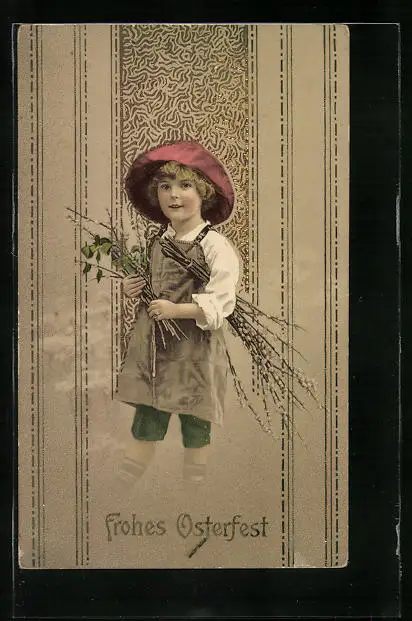 AK Junge mit Palmkätzchenzweigen zu Ostern