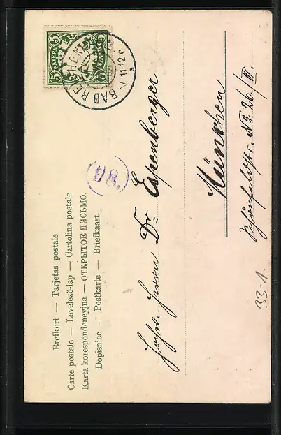 gelaufen 1904, Eckknick li. oben, guter Zustand