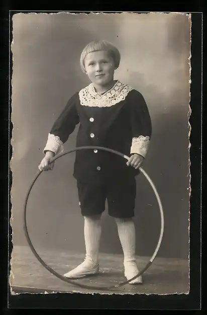 AK Junge mit Spielzeug-Reifen