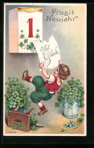 AK Junge reisst Kalenderblatt ab, Kleeblatt
