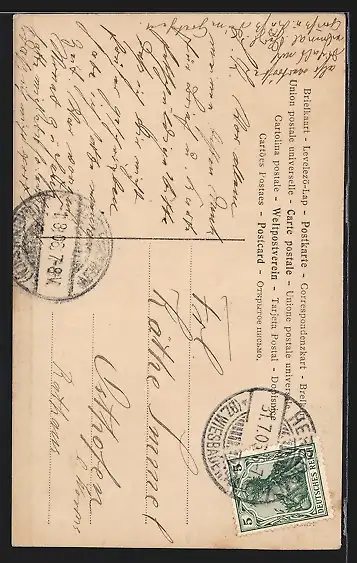 alte Ansichtskarte, gelaufen 1906, Eckknick li. oben, Stempelspur, guter Zustand