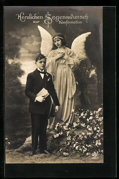 AK Junge und Schutzengel zur Konfirmation