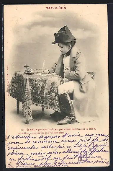 AK Junge verkleidet als Napoleon am Schreibtisch