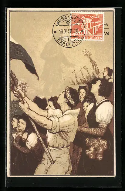 AK Jungendliche mit einer Fahne, Journée de la Jeunesse 1920