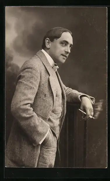 AK Junger Herr im Anzug raucht eine Zigarette