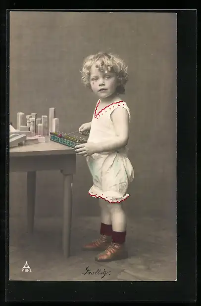 AK Junger Knabe mit Xylophon und Holzbausteinen