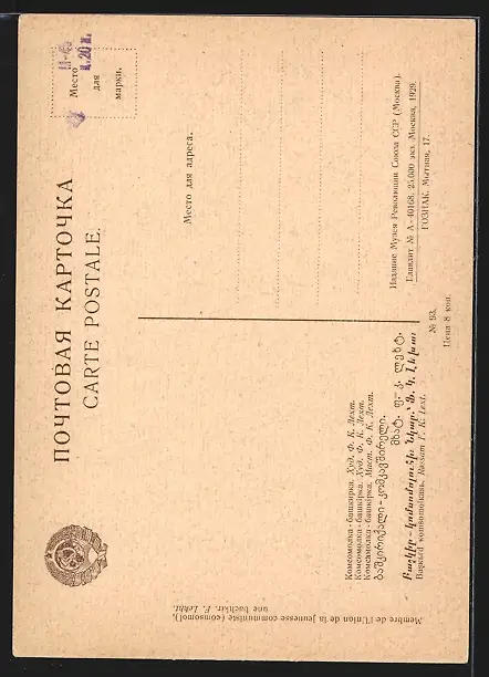 Personenbezogene Daten auf der Rückseite der Karte wurden durch blauen Textmarker unkenntlich gemacht. Die blauen Stellen sind auf die Vorderseite durchgeweicht und wirken sich negativ auf das Postkartenfoto aus
