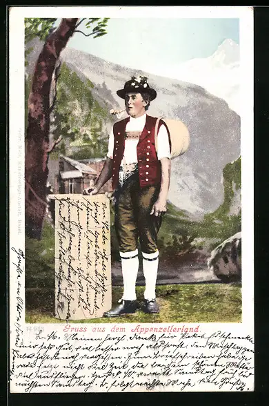 AK Junger Mann in Appenzeller Tracht mit Pfeife