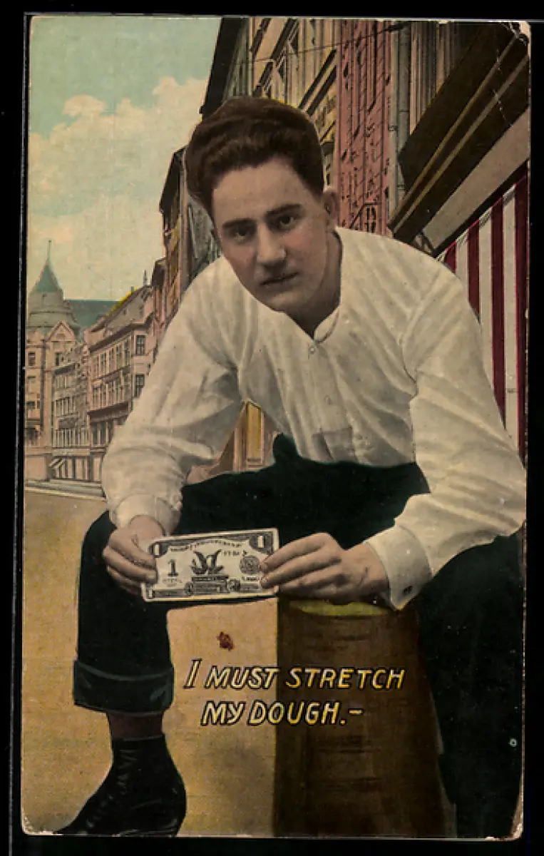 AK Junger Mann mit einem Geldschein
