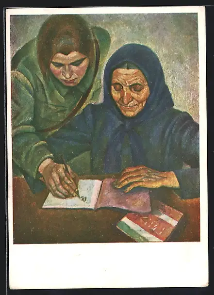 AK Junges Mädchen erteilt einer alten Frau Schreibunterricht