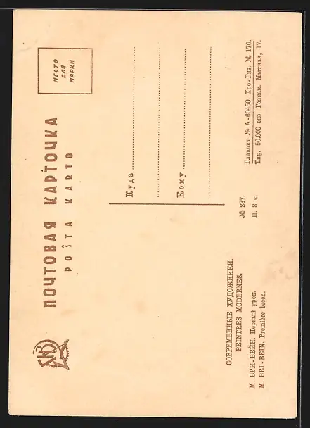 Personenbezogene Daten auf der Rückseite der Karte wurden durch blauen Textmarker unkenntlich gemacht. Die blauen Stellen sind auf die Vorderseite durchgeweicht und wirken sich negativ auf das Postkartenfoto aus