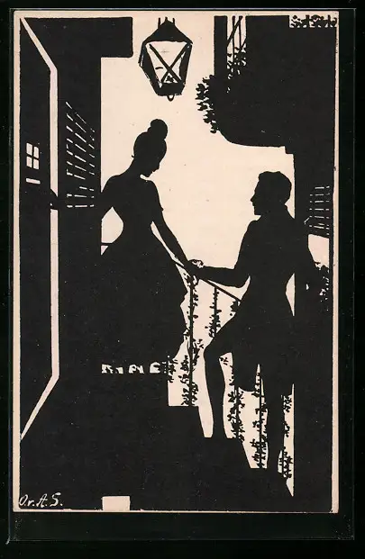 AK Junges Paar auf einer Treppe, Scherenschnitt
