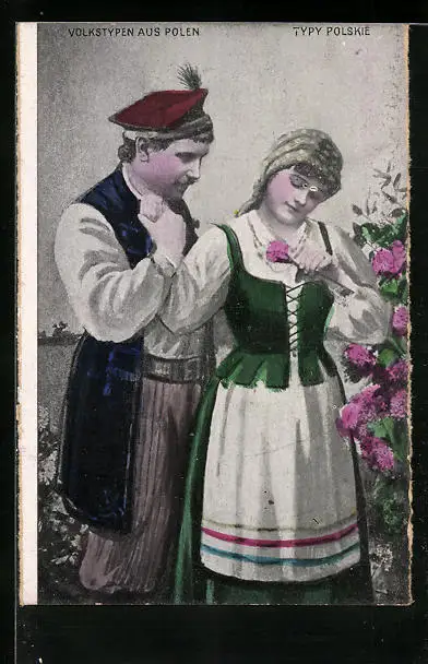 AK Junges Paar in polnischer Tracht