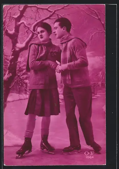 AK Junges Paar mit Schals beim Schlittschuhlauf