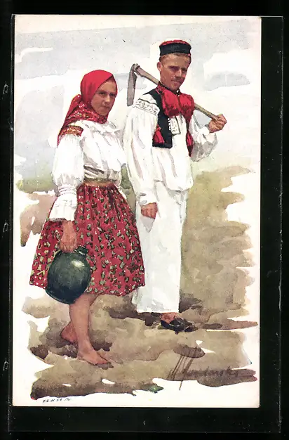 AK Junges tschechisches Landarbeiterpaar in Tracht