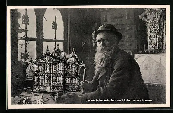 AK Junker bei der Arbeit am Modell seines Hauses, Montage