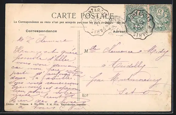 alte Ansichtskarte, gelaufen 1905, Eckknick unten links, guter Zustand