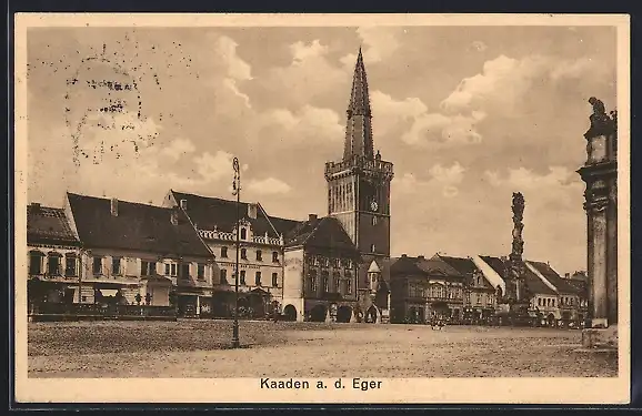 AK Kaaden /Eger, Kirche auf dem Marktplatz