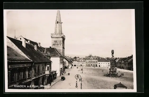 AK Kaaden a. d. Eger, Markt mit Denkmal