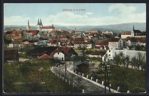 AK Kaaden a. d. Eger, Teilansicht mit Strassenpartie