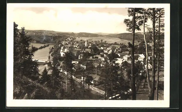 AK Kácov nad Sázavou, Totalansicht vom Ort