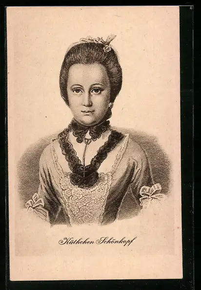 AK Käthchen Schoenkopf, mit Goethe in Leipzig bekannt