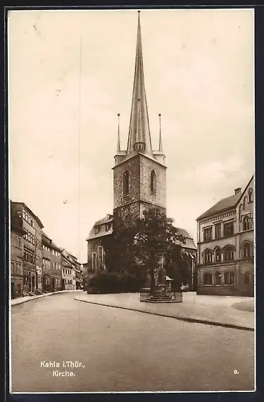 AK Kahla / Thür., Kirche mit Strassenpartie