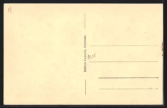 Personenbezogene Daten auf der Rückseite der Karte wurden durch blauen Textmarker unkenntlich gemacht. Die blauen Stellen sind auf die Vorderseite durchgeweicht und wirken sich negativ auf das Postkartenfoto aus